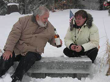 | From January 3rd to 9th, Steve Hegedus and Gary Davis organised a symposium on Symbolic Cognition at the Whitehouse Hotel in Vermont. On the way with Steve, his student Sara Dalton, David Tall and Chris Sangwin, we stopped in Shutesbury to visit the place where Jim Kaput is laid to rest and shared a dram of Oban with him. |