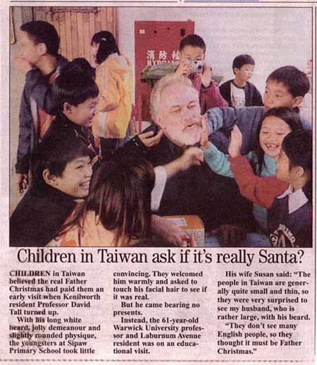 Back in England for Christmas, the following story appeared in the Kenilworth Weekly News (The newspaper in Davids town):