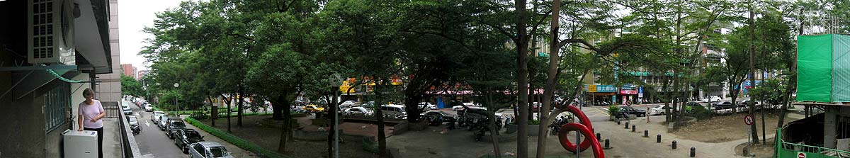 The view from our balcony on the left of the picture round to the little park in the centre of the picture and the main Shida Rd to the right. (Pan to the right to see the full picture, then close this window to return to my web-site.