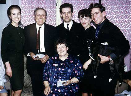 | Silver wedding for Harry and Nancy. Left to right are Rosemary, Harry, David, future wife Sue, Graham (with Jenny) and Nancy seated in front. The picture was taken at 40 Great Park Street in the front room (as decorated by David with some assistance from Sue). |