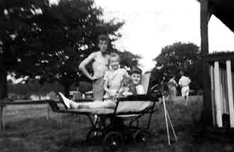 | Graham broke his thigh and had severe head injuries in an accident at Wicksteed Park, Kettering when he was 10 years old. He and David were on a big swing in a triangular shape with a wooden base. Graham was in the middle, David at one end working it up. A youth jumped on the other end and took it so high that Graham fell off. He lay under the swing being hit on the head several times until a stranger stopped it with his back. David fell off but was uninjured. Graham was in Kettering General Hospital for six weeks. He was expected to be unconscious for some time but woke up the following morning and asked for a cooked breakfast. But his head injuries impeded him at school for several years after that. David visited him in hospital every day. Here he relaxes at Overstone with David and Rosemary. |