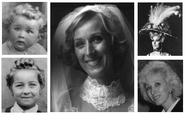 | Five pictures of Rosemary, at her wedding (centre), as a baby, at school (right), as a Bluebelle Girl, more recently (right). |